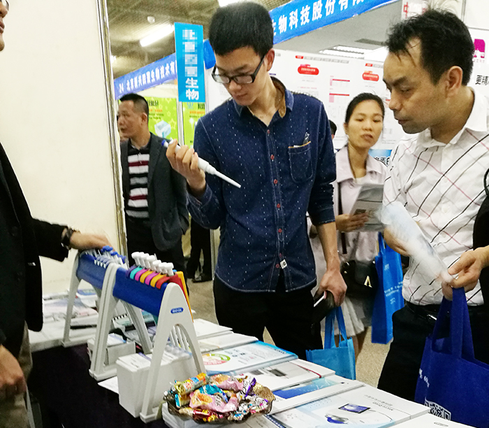 參展人員在丹利展臺現場(chǎng)體驗BIO-DL Genex移液器